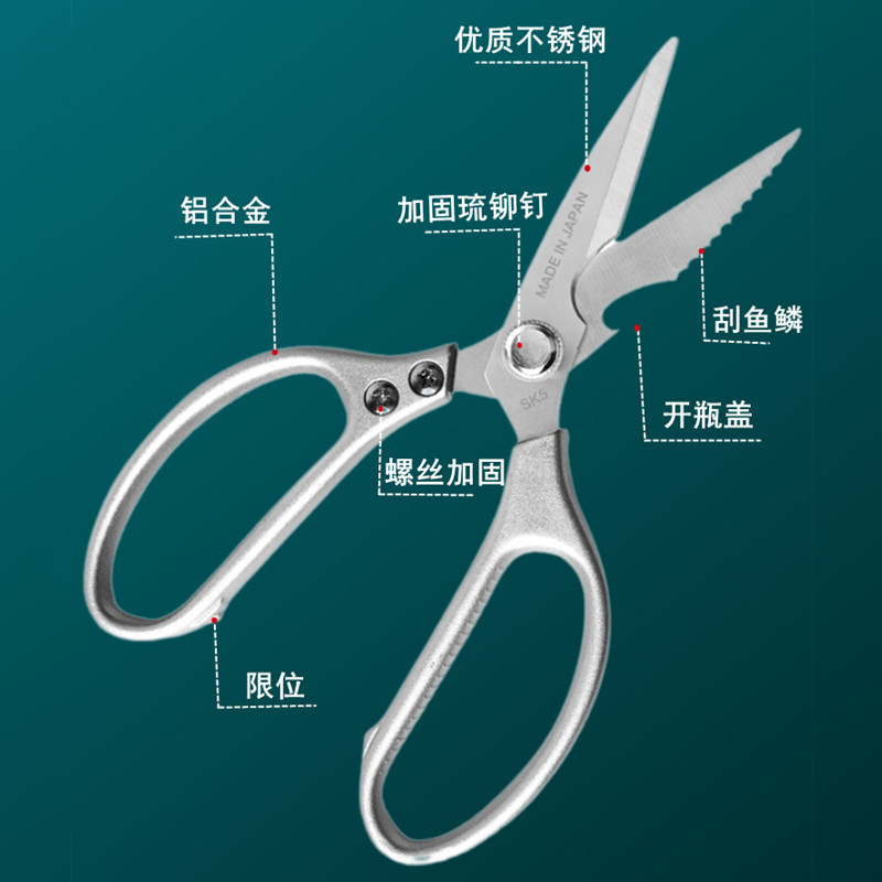 Japanese craft kitchen scissors sk5 stainless steel household chicken bone cut four generations of large chicken duck bone strength cut