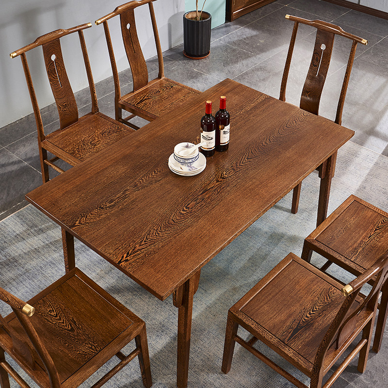 Mahogany chicken wing wood Chinese style antique Ming and Qing dining table and chairs all solid wood combination simple modern dining table restaurant furniture