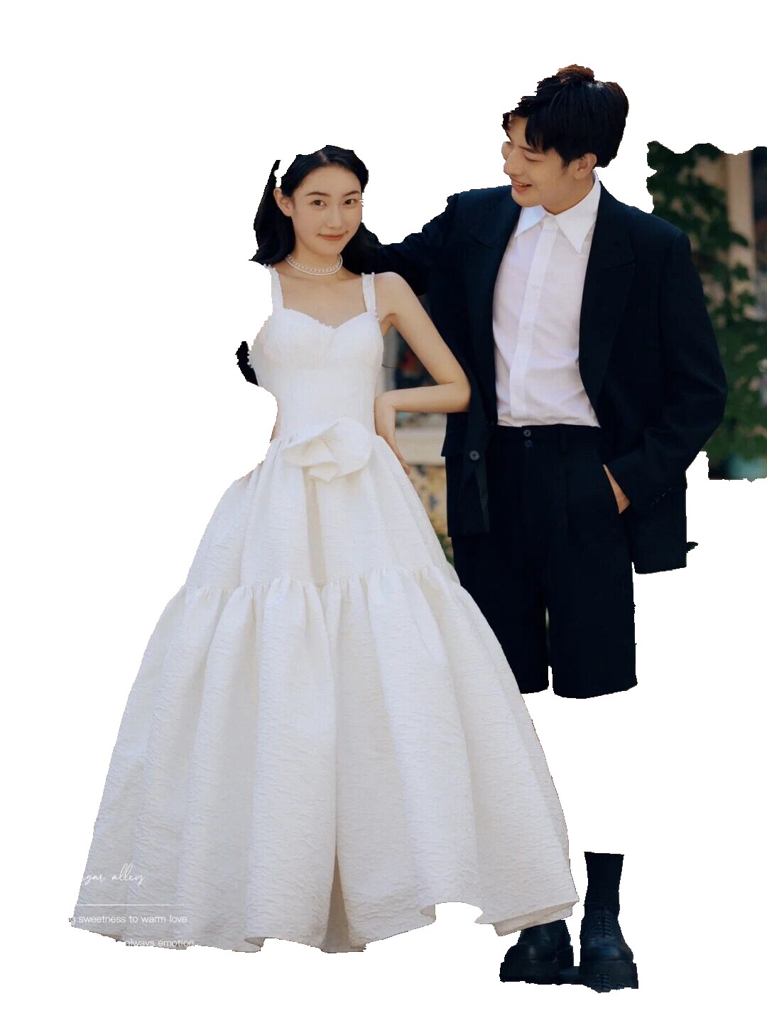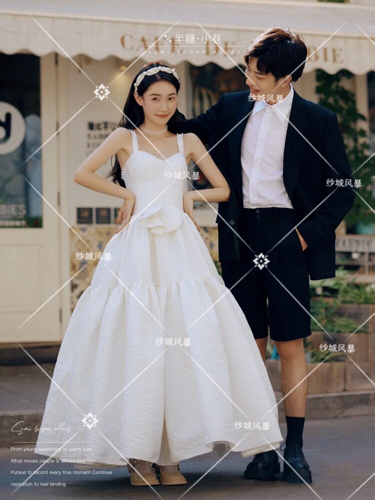 Studio photography theme clothing new French location street photography couple travel photography fashion Mori suspender printed wedding dress