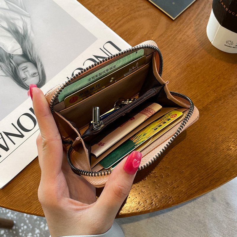 Genuine Leather Zero Wallet Card Bag Integrated Bag Lady Sheepskin Short card clip 2023 new large capacity magige credential package-Taobao