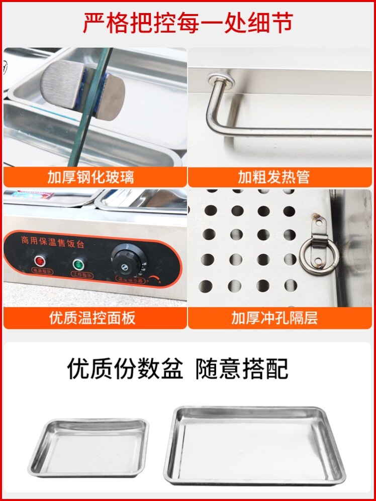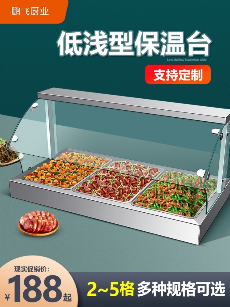 Glass cover fast food heat preservation table commercial heating dining room fast food truck hit vegetable soup pool constant temperature energy saving heat preservation food sales table