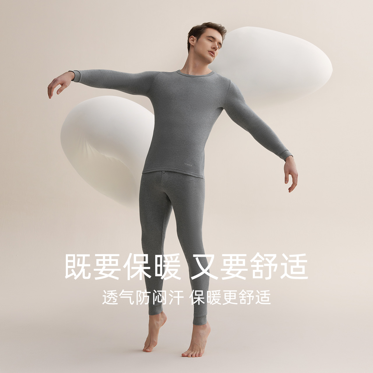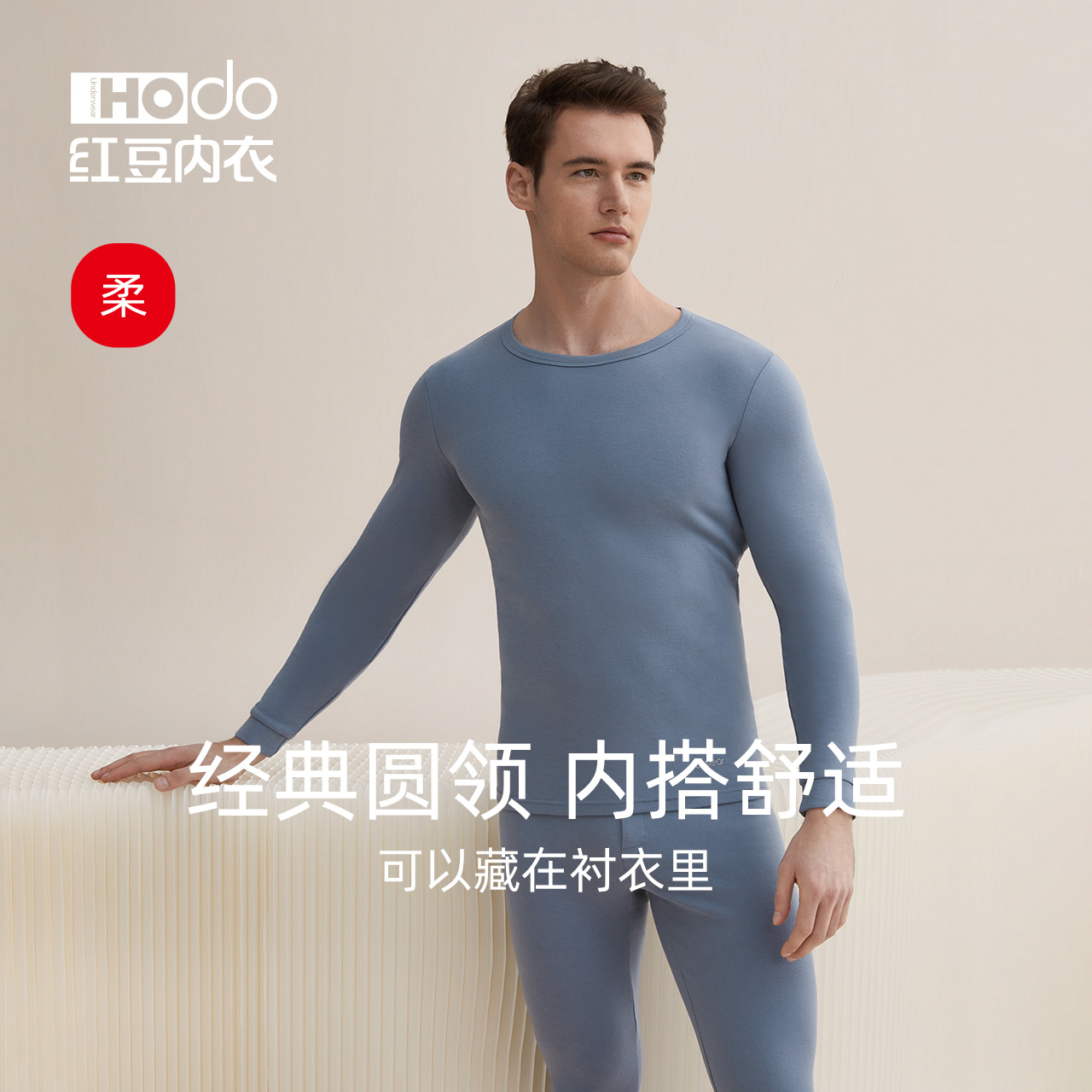 Red Bean Men's Autumn Clothes Autumn Pants Combed Pure Cotton Slim antibacterial cotton sweatshirt full cotton Youth Warm Underwear Suit-Taobao
