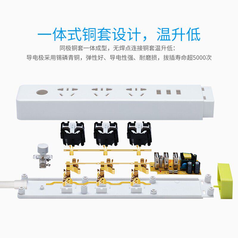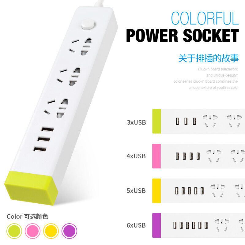 Justice cow USB plug multi-port plug-in board fast charging socket long line 3 5 meters 8m multi-functional porous row socket