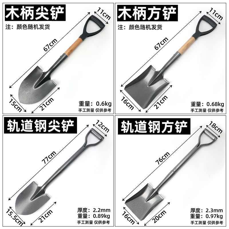 Economic type wooden handle shovel wood handle tip shovel track steel sharp shovel track steel square shovel Large number track steel tip shovel Large number track steel square shovel black carbon steel engineering shoveling green carbon steel work shovel