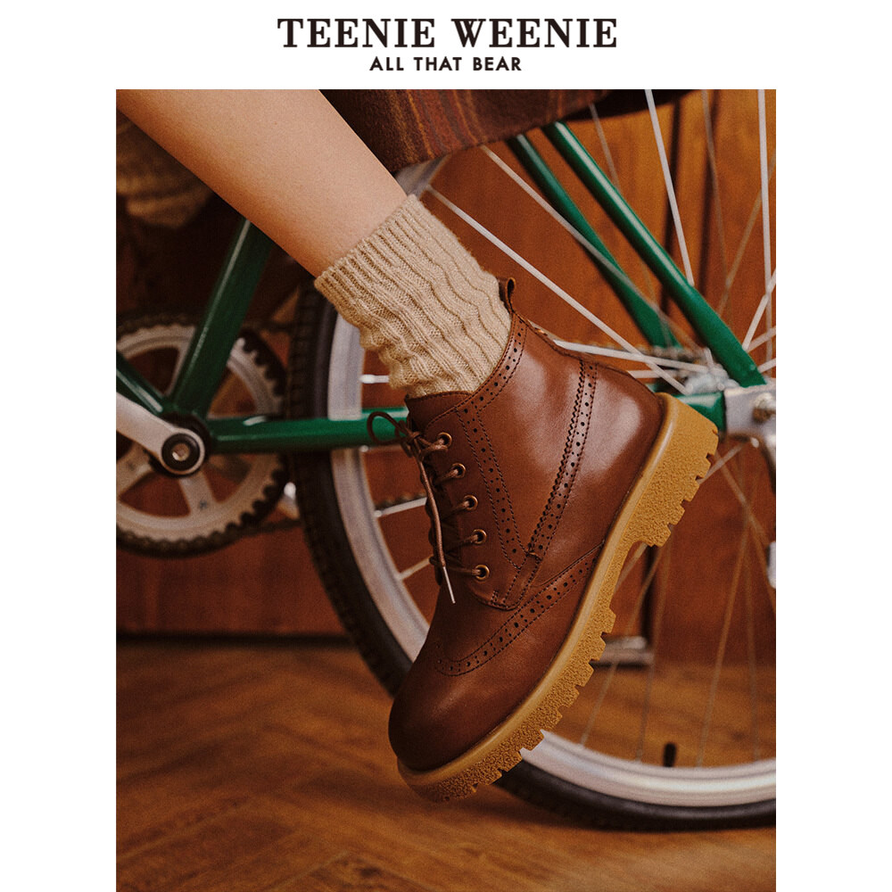 TeenieWeenie small bear black leather shoes women's autumn winter new women's shoes Martin boots temperament Inn Wind Leisure-Taobao