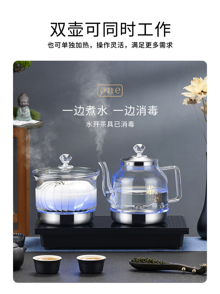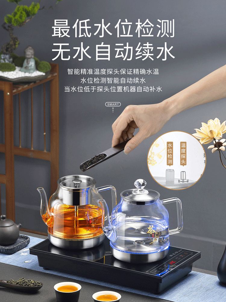 Fully automatic bottom double-up water electric heating kettle tea table dedicated one-piece embedded tea table pumping tea set tray