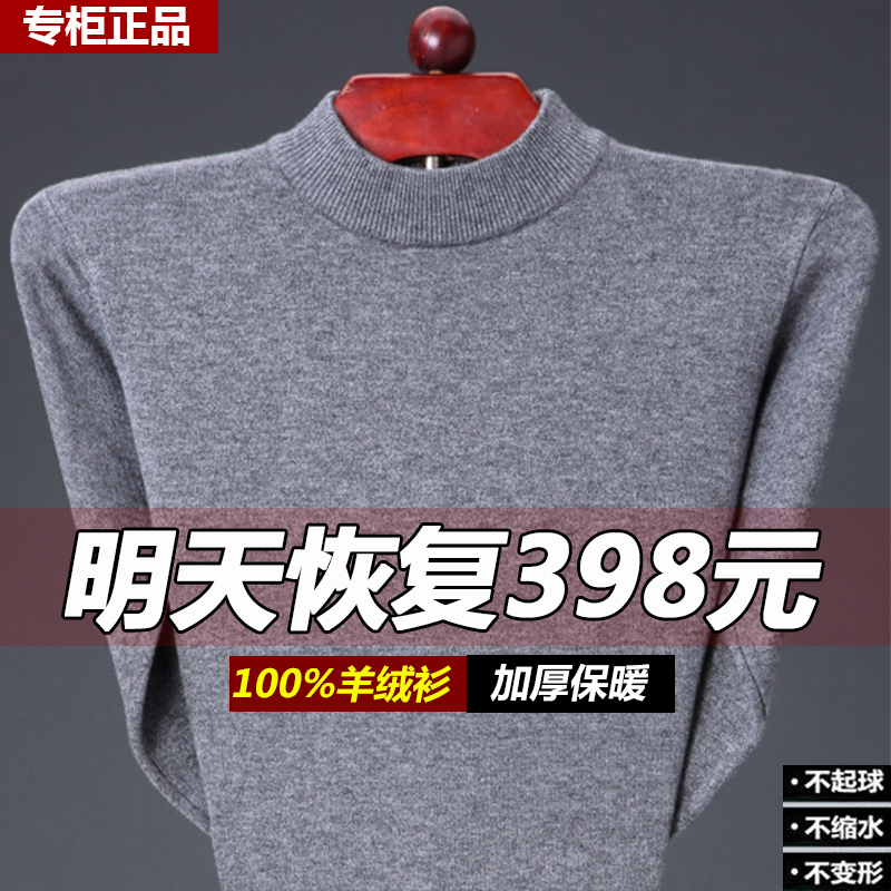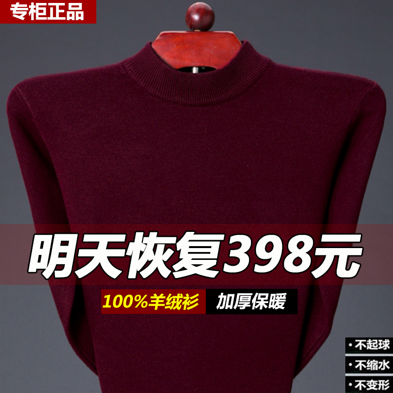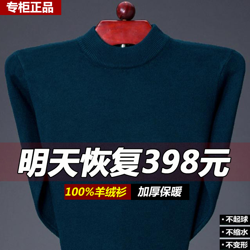 City 100% Ordos 100% pure cashmere sweatshirt male and half high round neckline thickened warm medium aged lamb sweater sweater-Taobao