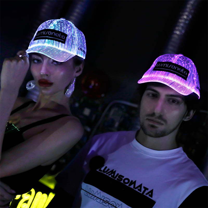 LED Optical Fiber Baseball Cap Duck Tongue Cap Luminous Baseball Cap Luminous Outdoor Trampoline Cap Luminous Fiber Nightcap-Taobao
