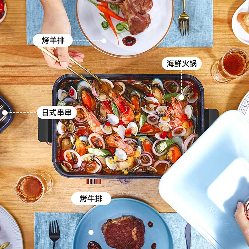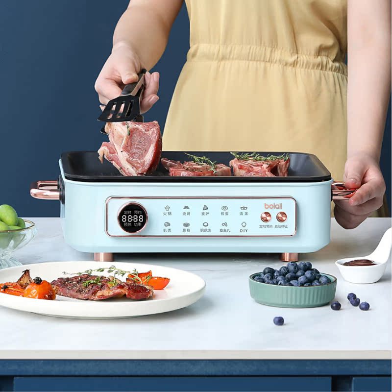 Borali multi-function cooking pot electric barbecue meat boiler net red pot all-in-one household cooking, frying and frying electric hot pot