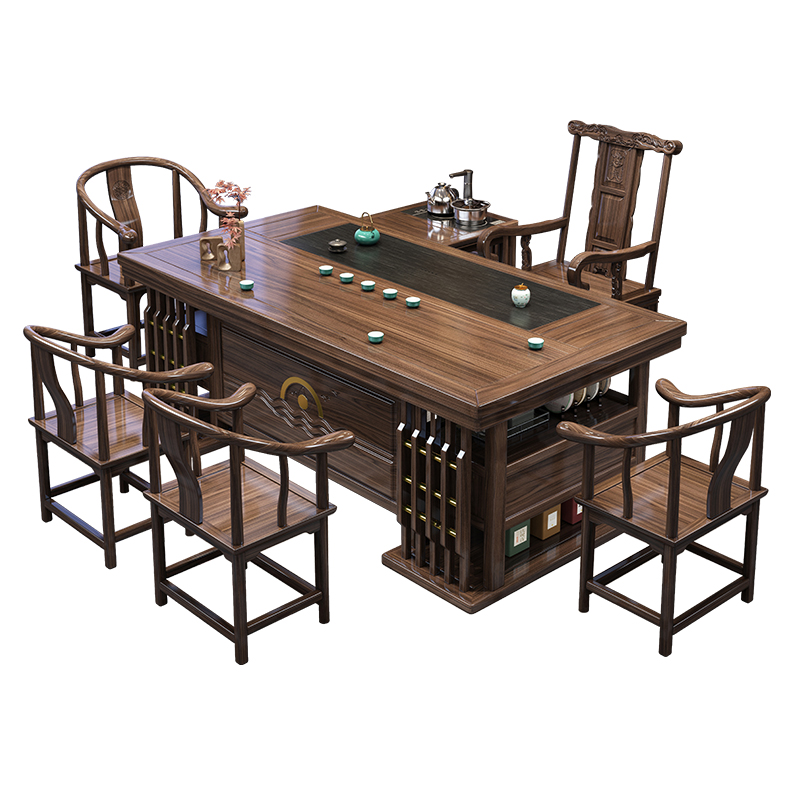 Solid wood tea table and chair combination, new Chinese style office coffee table and tea set set, home table and five chairs Kung Fu tea making table