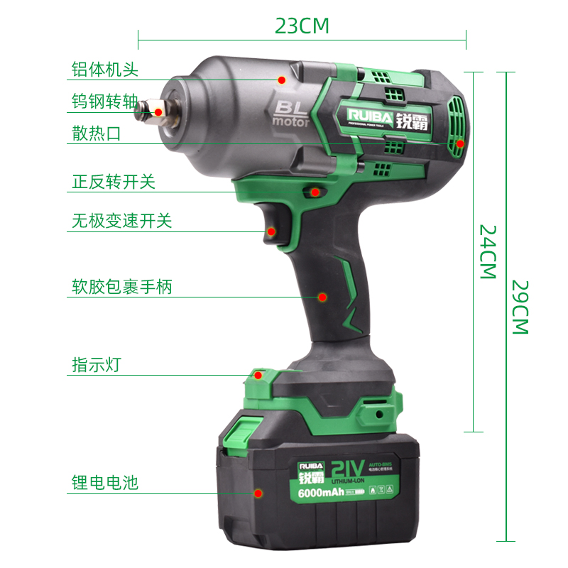 Ruiba electric wrench 806 810 818A large torque 1500 brushless heavy-duty impact wrench tower crane electric wind gun