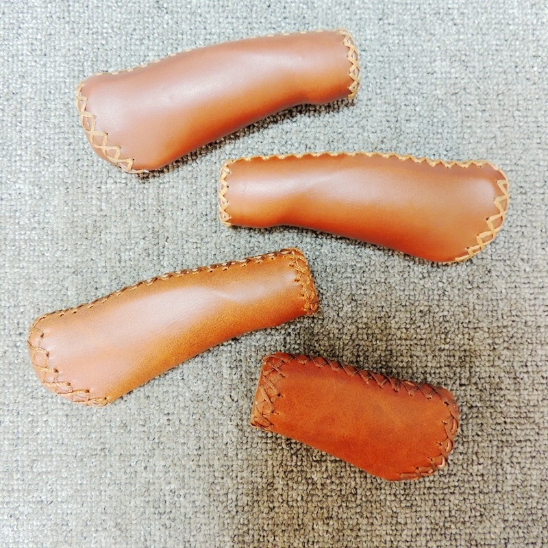 Commuter bike mountain bike handlebar covers Folding bike brown long and short leather sewn handlebar covers