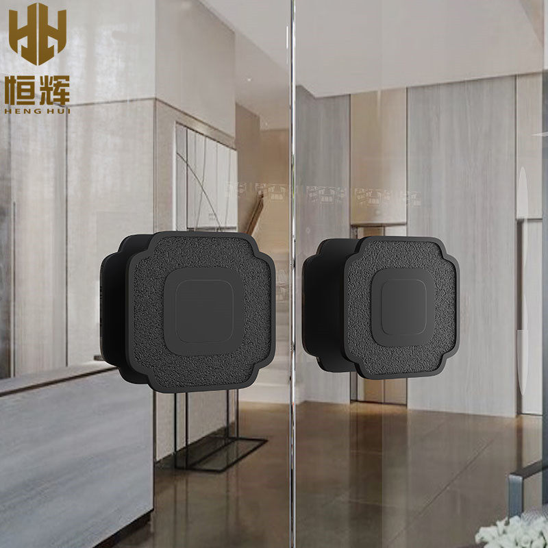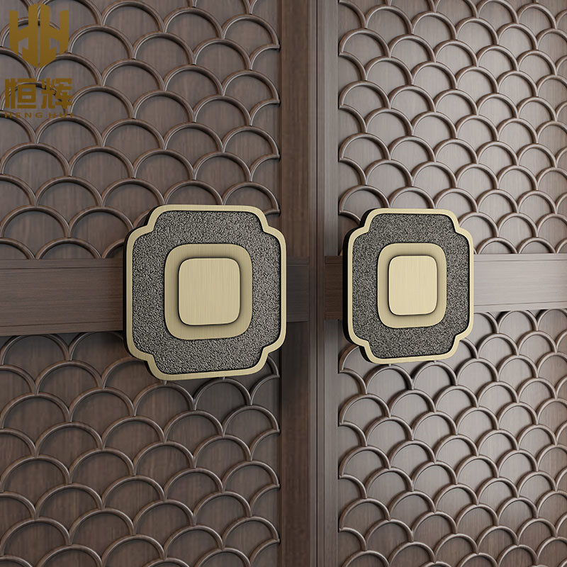 New Chinese square door handle bronze glass door handle custom solid aluminum carving hotel will be wooden door handle