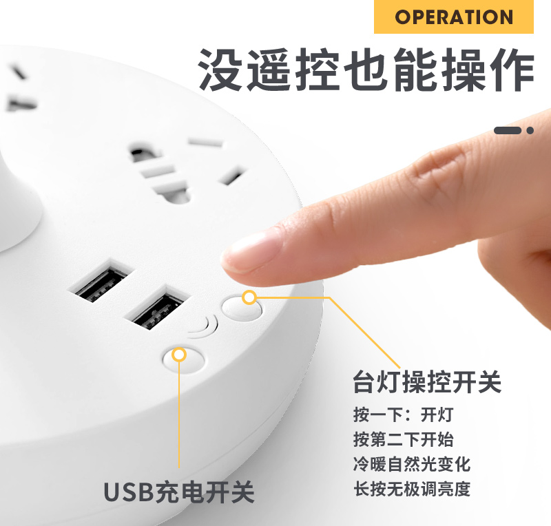 Reading table lamp bedroom bedside lamp socket one plug-in desk multi-function remote control small night light baby feeding