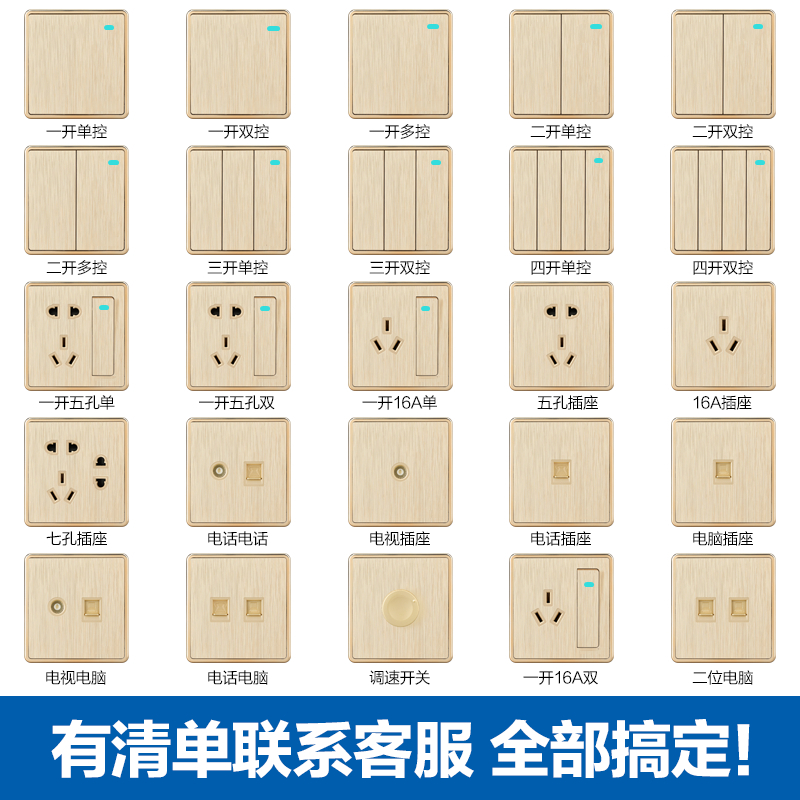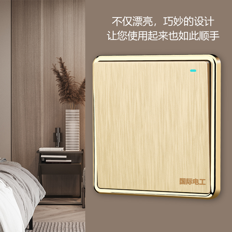 Type 86 concealed 1 open double control switch panel champagne gold double control single open wall light switch socket household