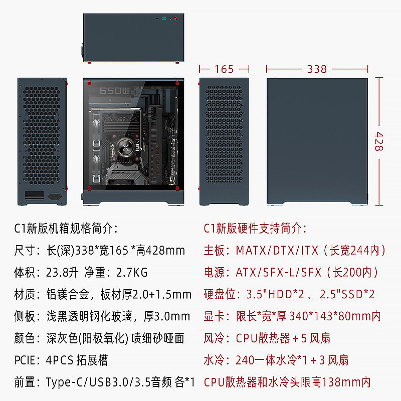 Small Zhe Youpint C1 New all-aluminum MATX ITX Host shell side through 240 Water cooling ATX large power small desktop computer