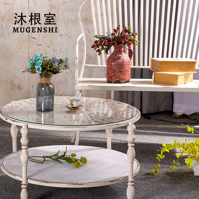 American country round tea few small household vintage solid wood made old French living room sofa side several creative accommodation