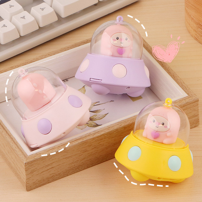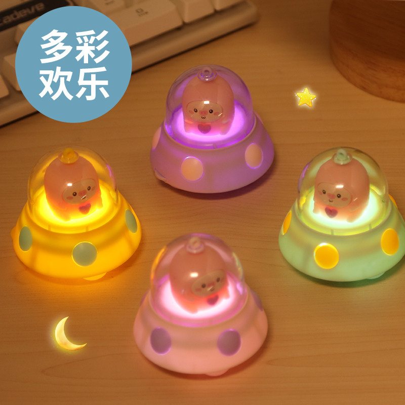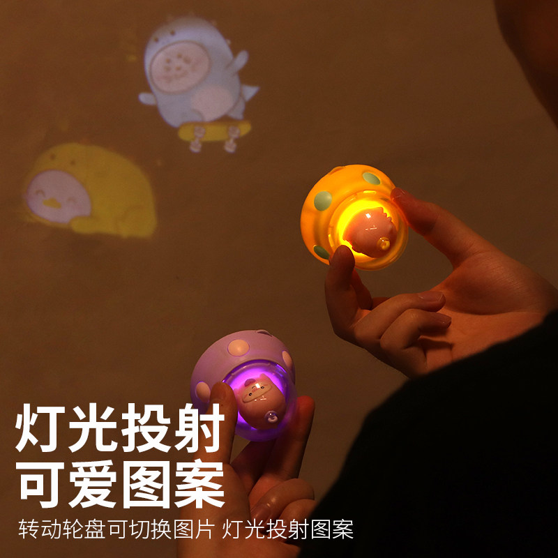 Net red Makaron children lovely projected glowing UFO hanging keychain manually projected flying saucer lamps multiple graphs
