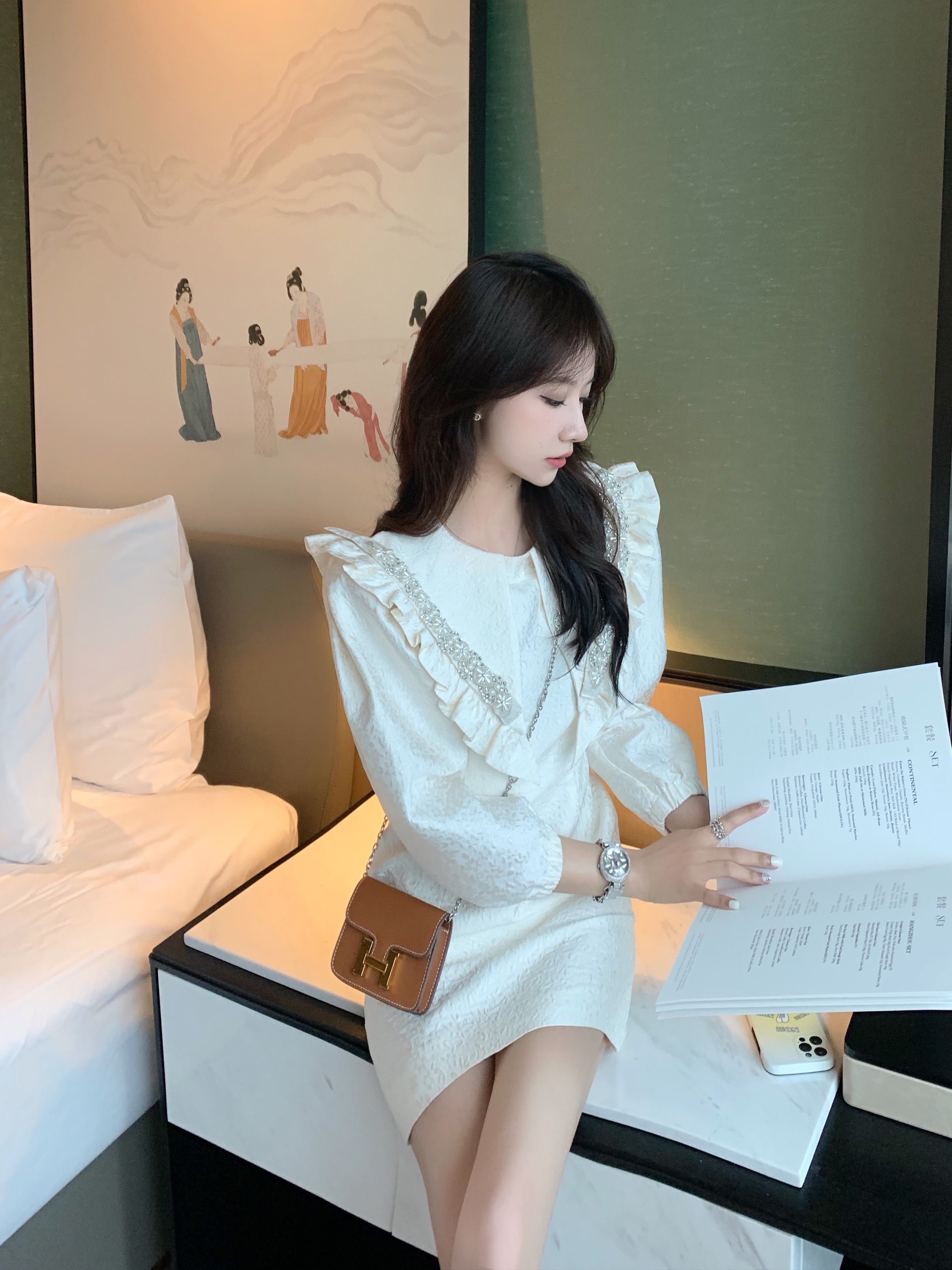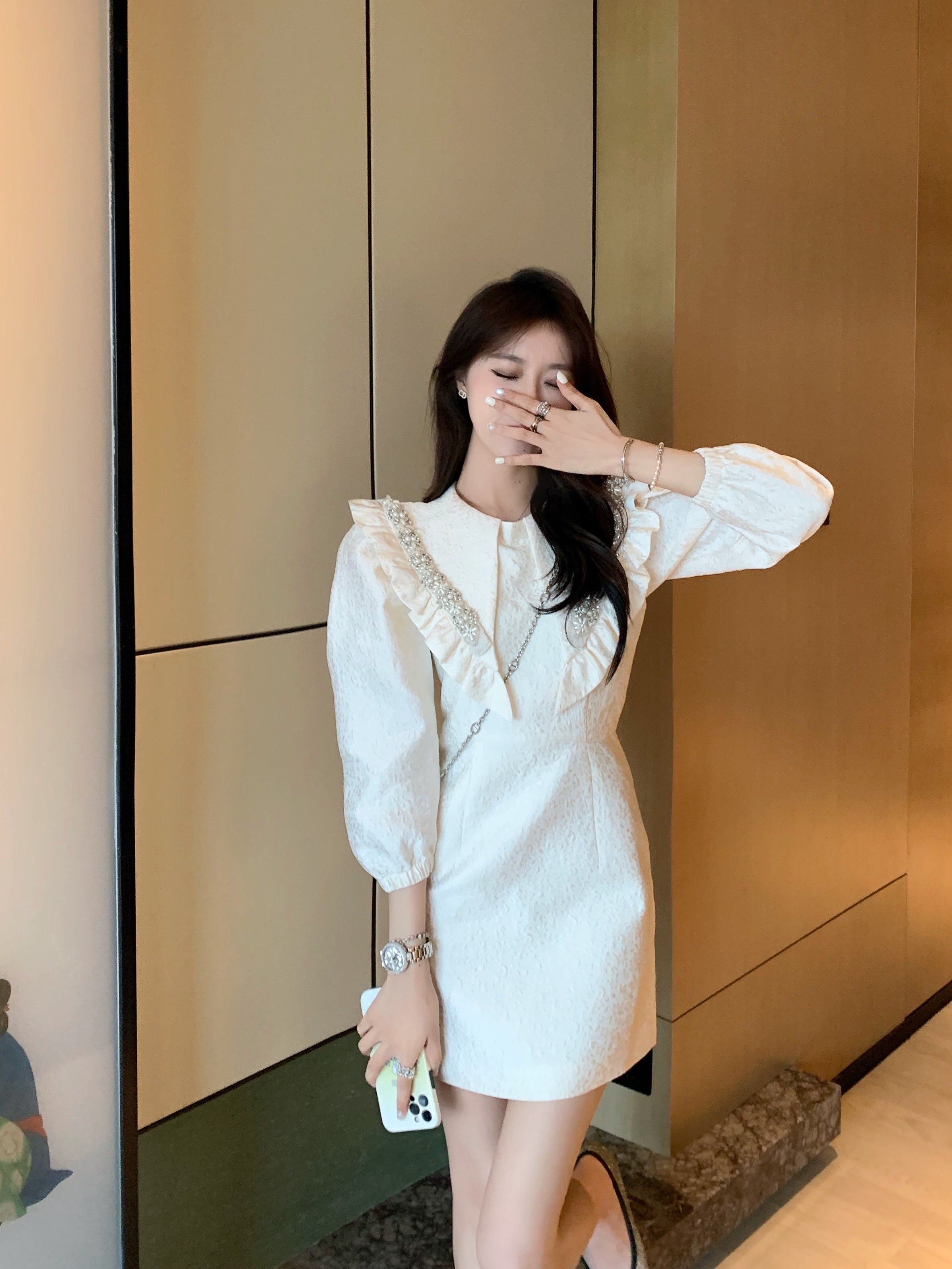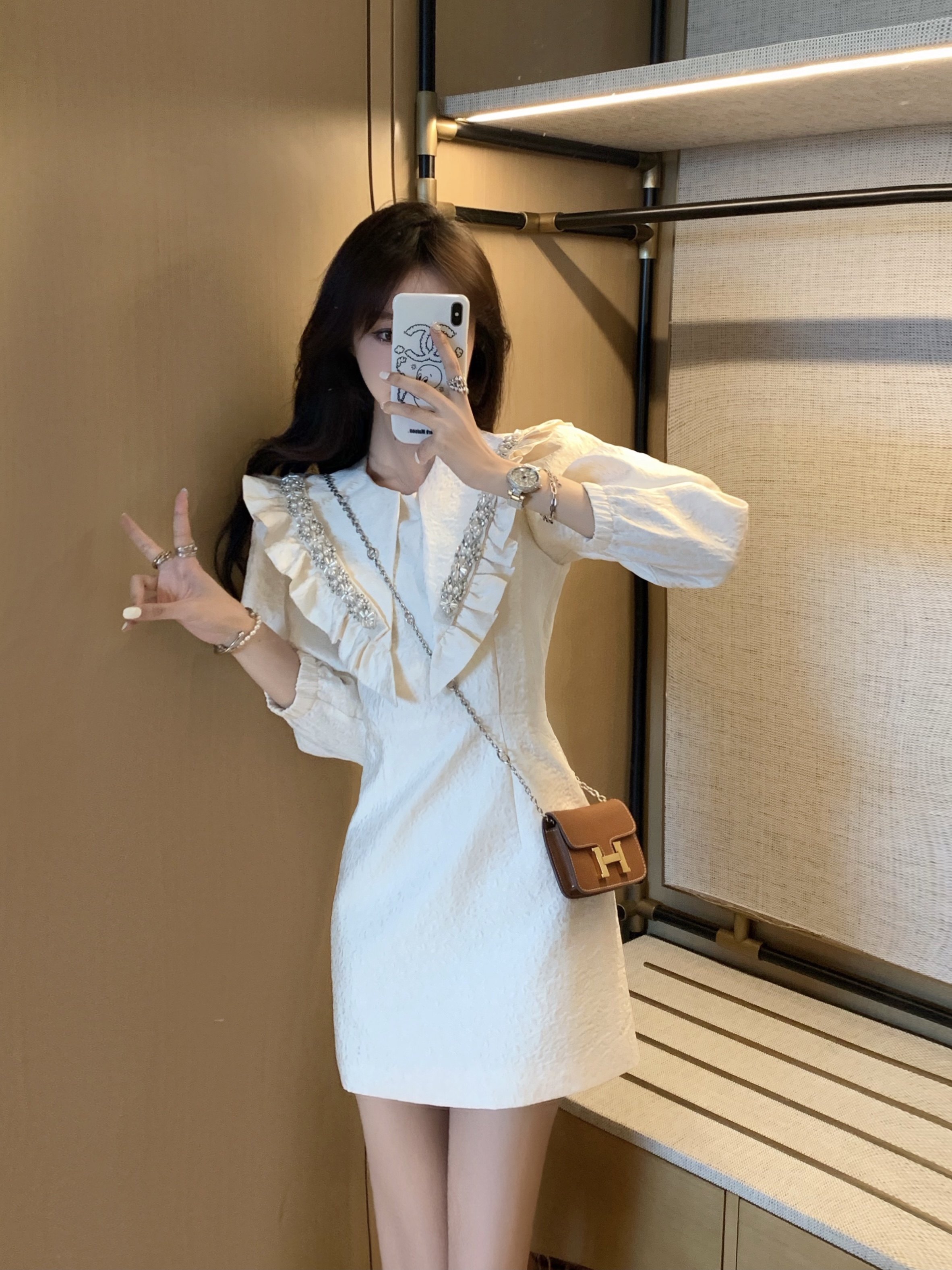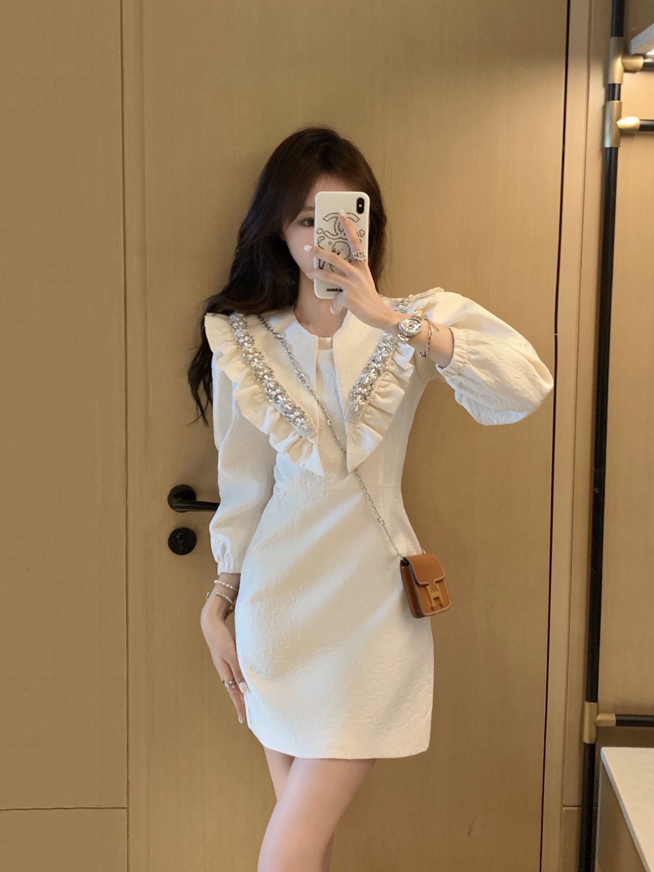 White small scents windy with dress fall 2023 new women's fashion Fashion Temperament Cashew's slim long sleeve French dress-Taobao
