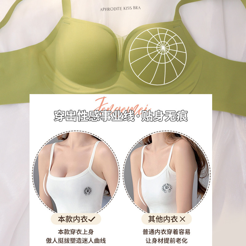 Green bra naked underwear female bra gathering movement 3D soft support anti - offset vertical milk thickness