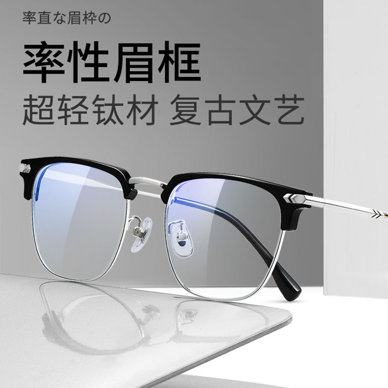 Ultra Light Pure Titanium Half Frame Glasses Men's Nearsightedness of Myopia Accessories Lenses ruffians Blu-ray Large-frame Eye Frame Woman-Taobao