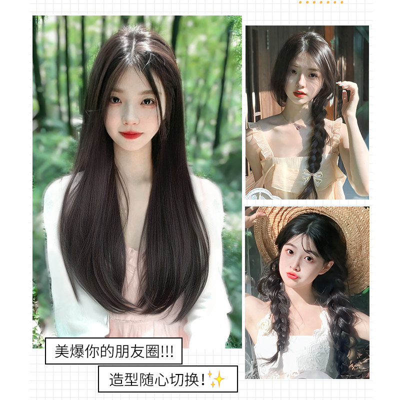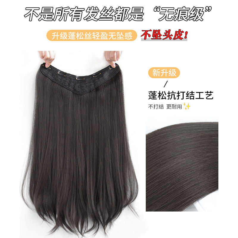 Wig female long hair (microroll) One-piece type of u type of u-type hair-in-chip with long straight hair increasing hair loss without marks-Taobao