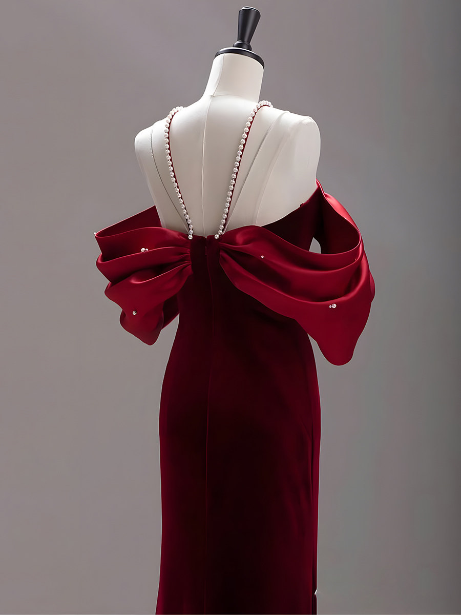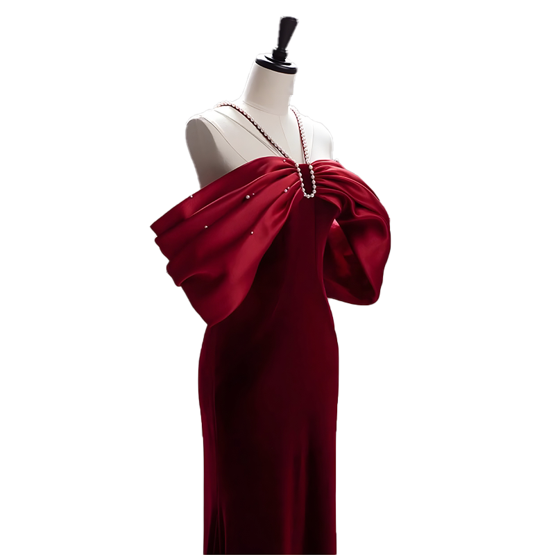 Fish tail shoulder velvet engagement dress high - end luxury small number 2022 new engagement banquet marriage toast suit