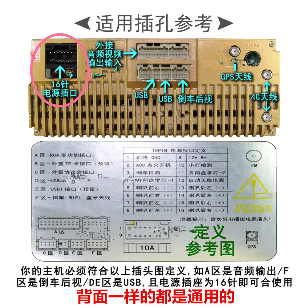 Connector Android pair plug-in line free wiring installation large screen universal extension line blind spot camera car navigation assistance