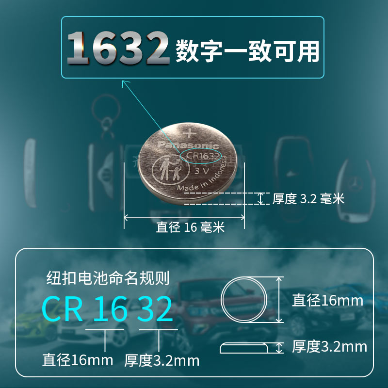 Panasonic CR1632 Button Battery 3V Car Remote Control Key Lithium electronic Panasonic Original Imported GR1632H Round Lithiumcell Ce