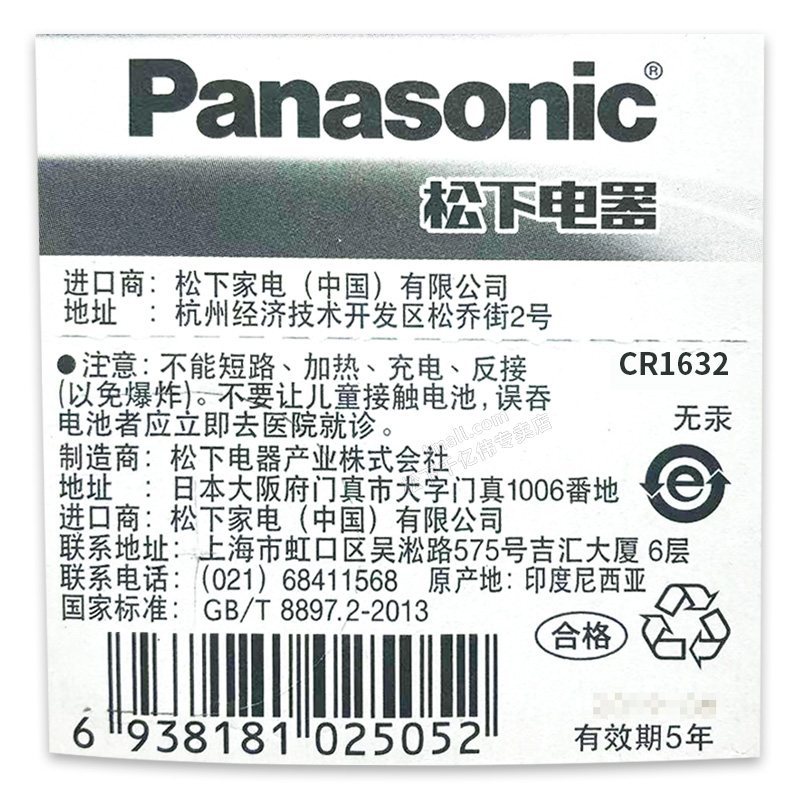 Panasonic CR1632 3V imported battery 2 grain Panasonic CR1632 3V imported battery 5 grain