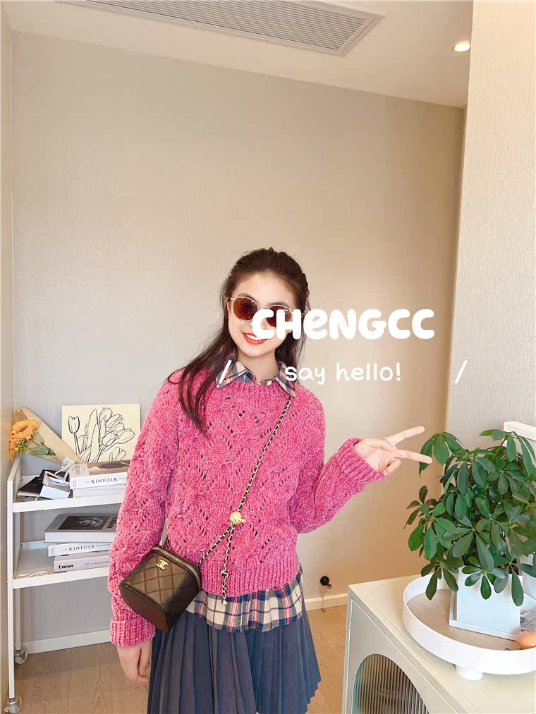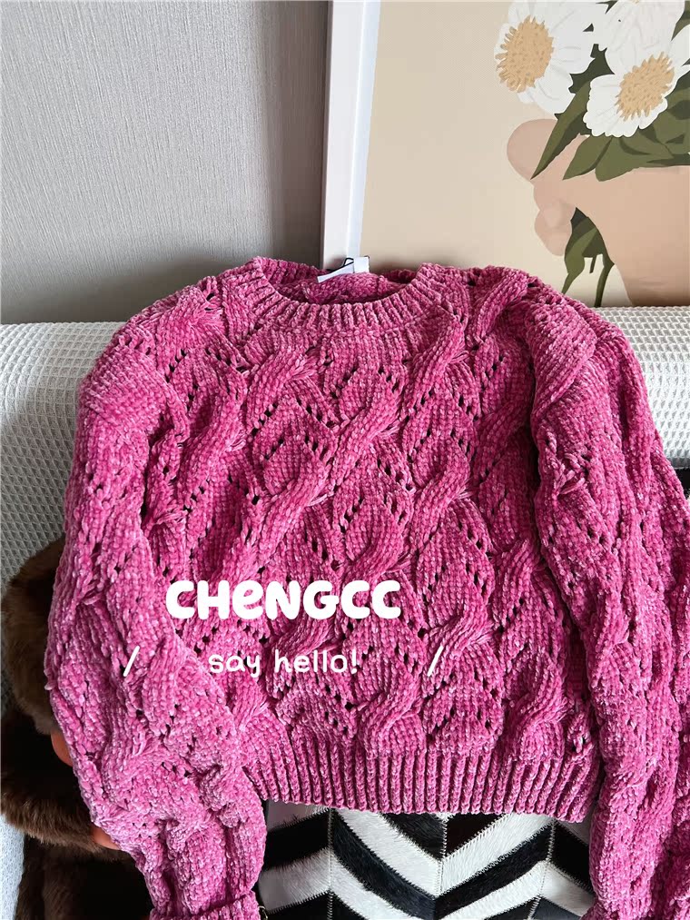 Mid - middle of the year autumn and winter adult powder purple thickened straw sweater