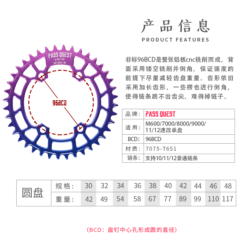 PASS QUEST dazzling 96bcd 11 12 speed m80006000 5100 positive and negative tooth disc round single disc xtr