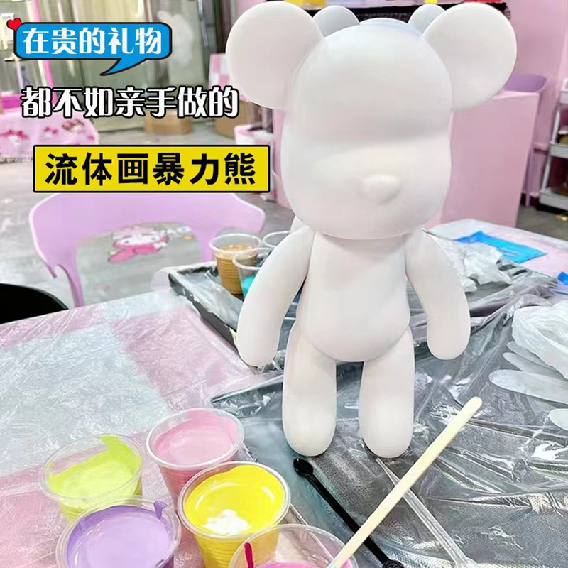 Fluid painting bear paint violent bear acrylic dye handmade diy keychain white embryo decoration net red bear gift