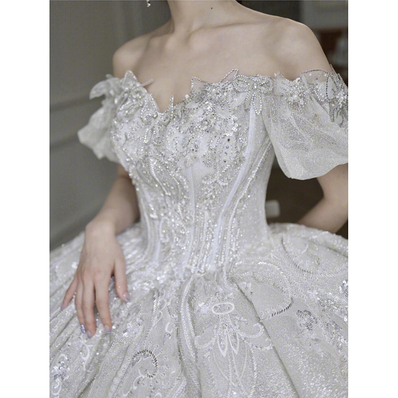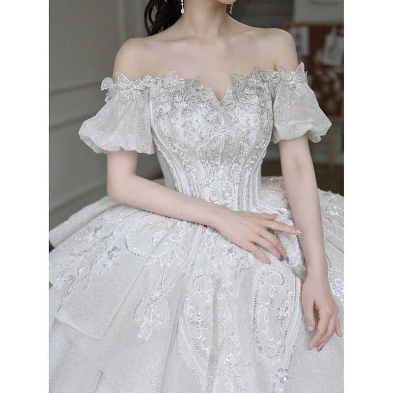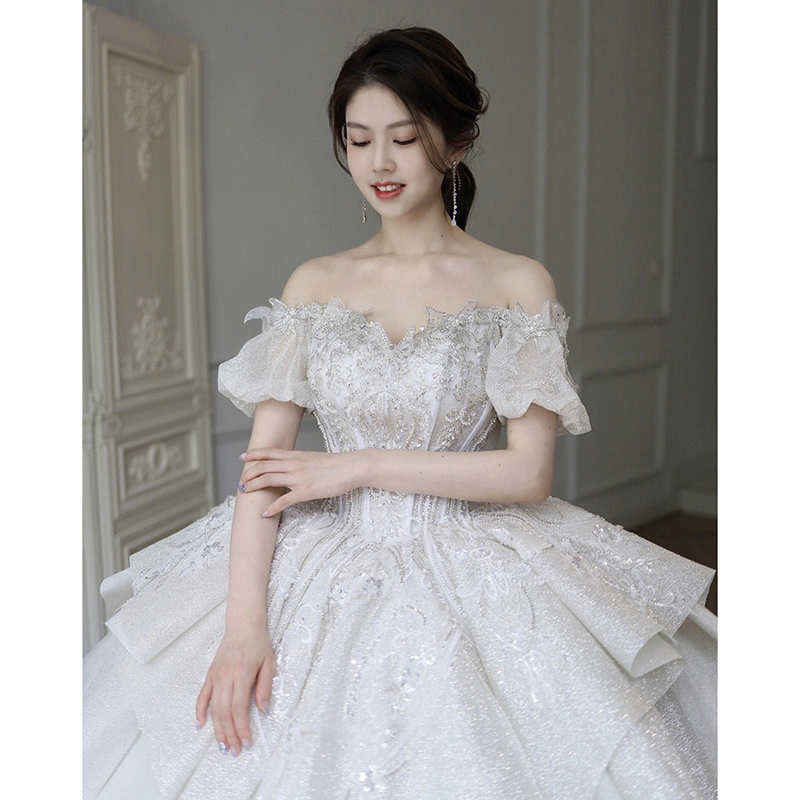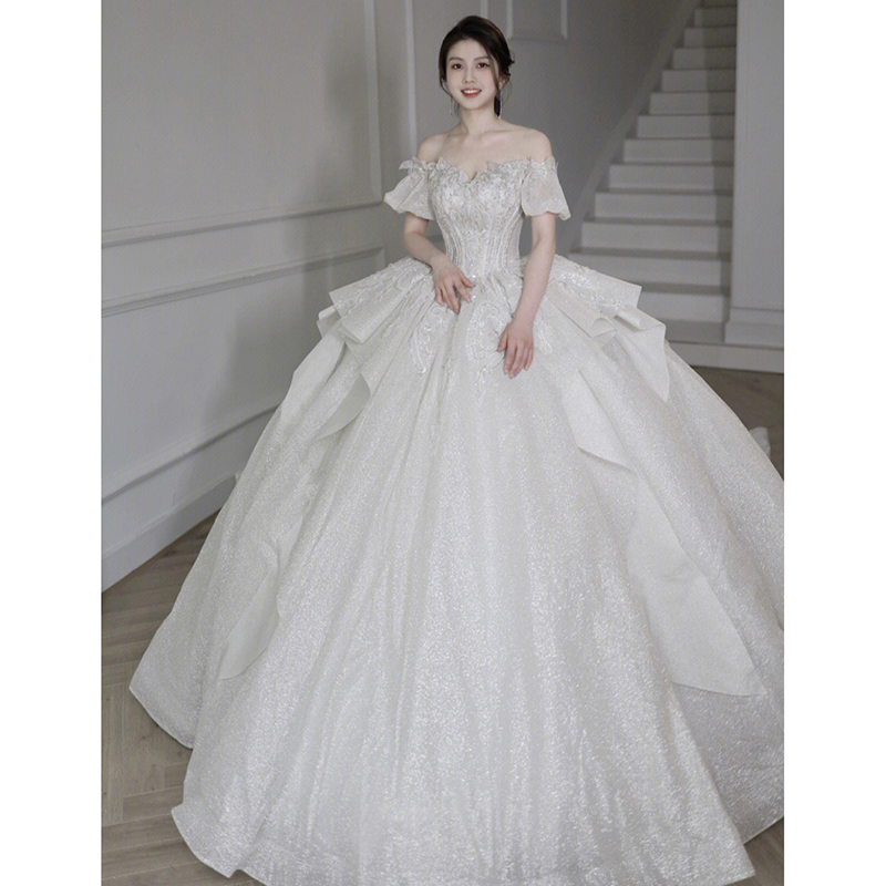 Straight Shoulder Method Main Wedding Dress 2023 New Bridal Gown Senior Sensation Small Pregnant Woman Big Code Trailing Winter-Taobao