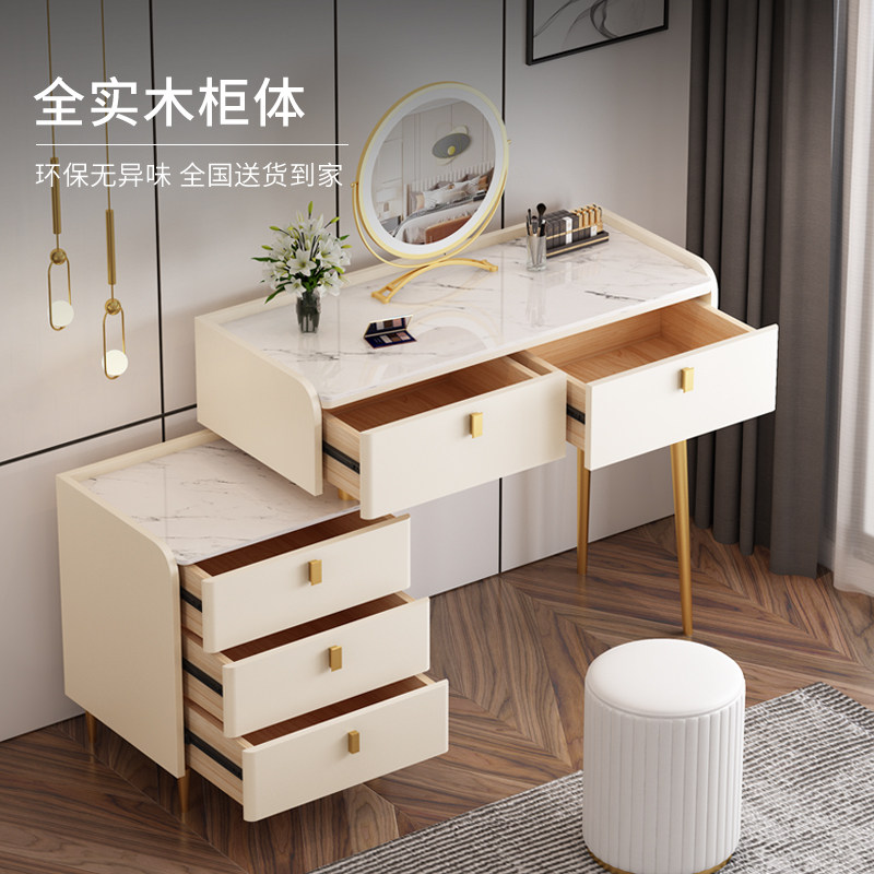 Whole dress light extravagant minimalist with modern solid wood rock plate dresser small family Nordic make-up table 2022 mesh red makeup table