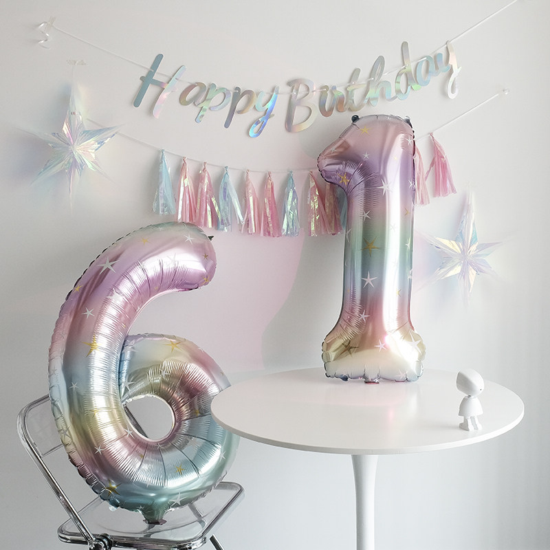 40 inch 6 - year - old digital balloon rainbow stars are turning showing rain curtain Princess's birthday layout decoration in wind