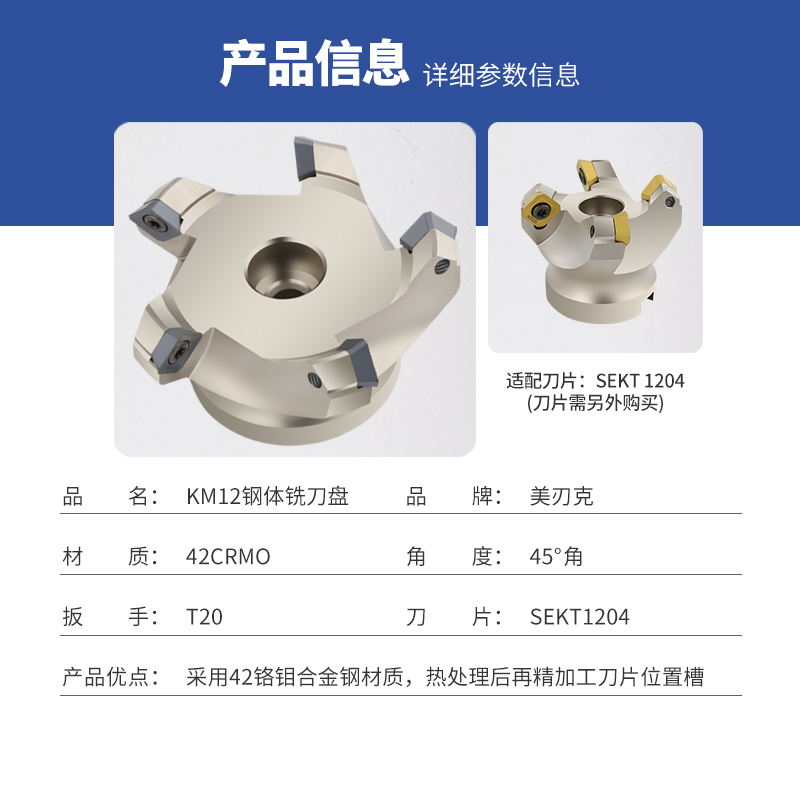 MiRKO CNC milling cutter disc KM12 steel cutter disc 45 degree angle SEKT1204 cutter grain CNC flying milling face milling cutter disc