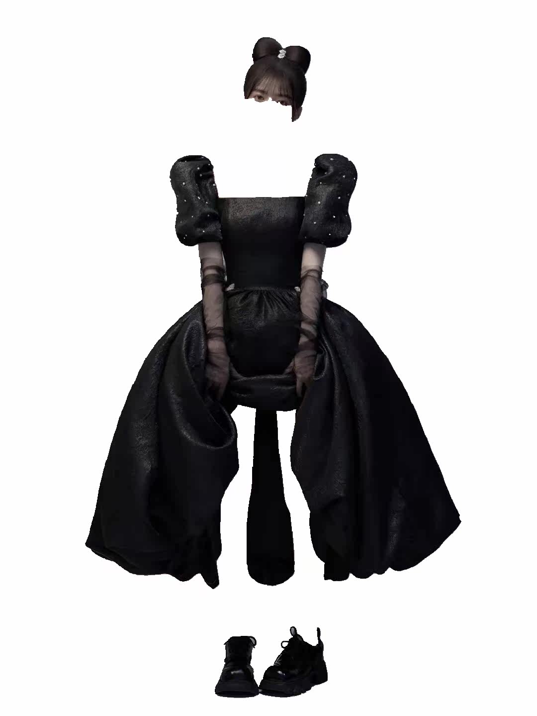 Studio Art Photo Retro Girl Photo Theme Photo Costume Black Dress Hepburn Style Puff Sleeve Wedding Dress