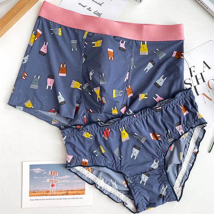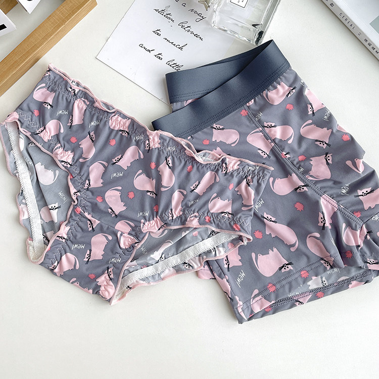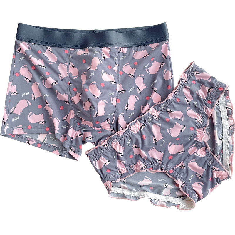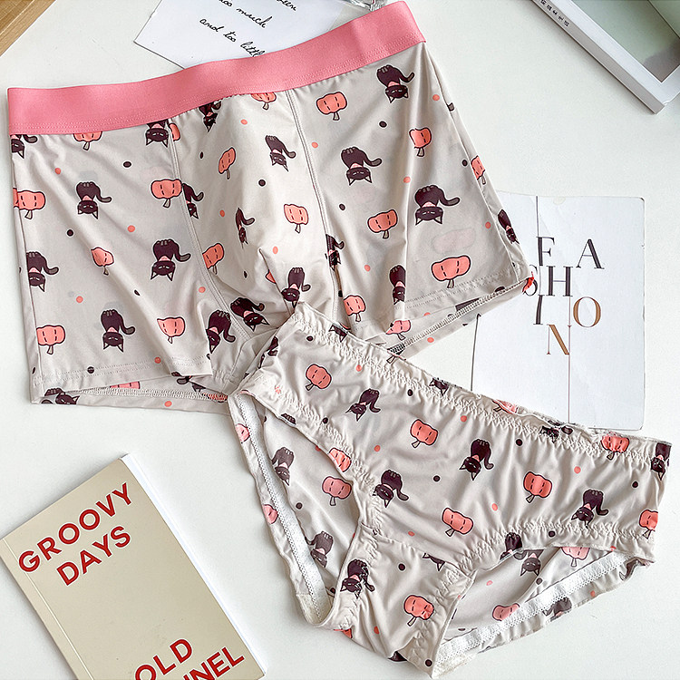 Couple's underwear ice silk summer thin section breathable cartoon printing cute and comfortable one man and one woman to send Qixi Festival gifts
