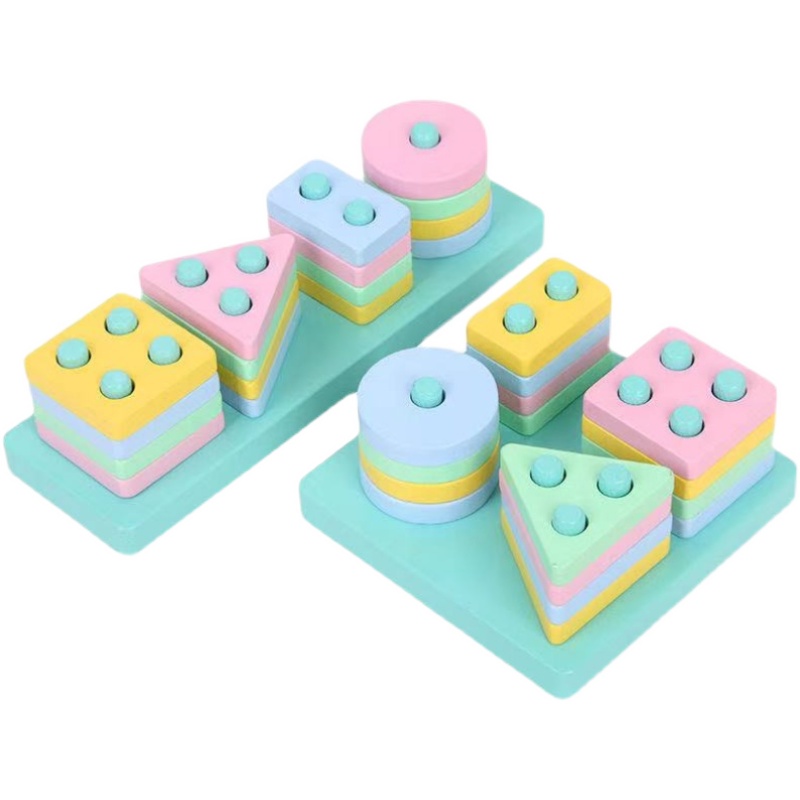 Macaron Geometry Couple Wooden Four Column Shape Ball Block Ball Block Children's Puzzle Toy 1 - 2 - 3 years old