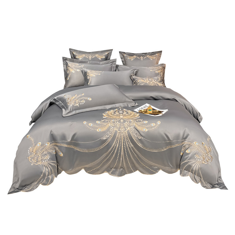 Italian luxury cotton four-piece set full cotton light luxury high-grade silk embroidery quilt cover wedding bedding winter