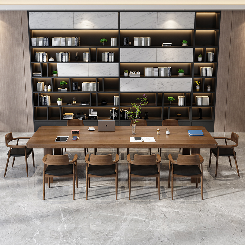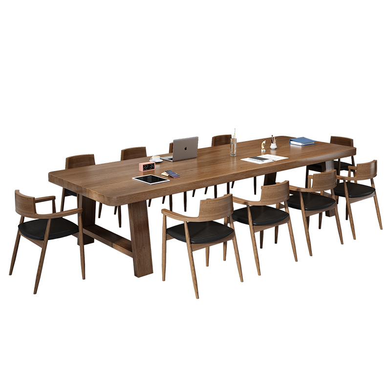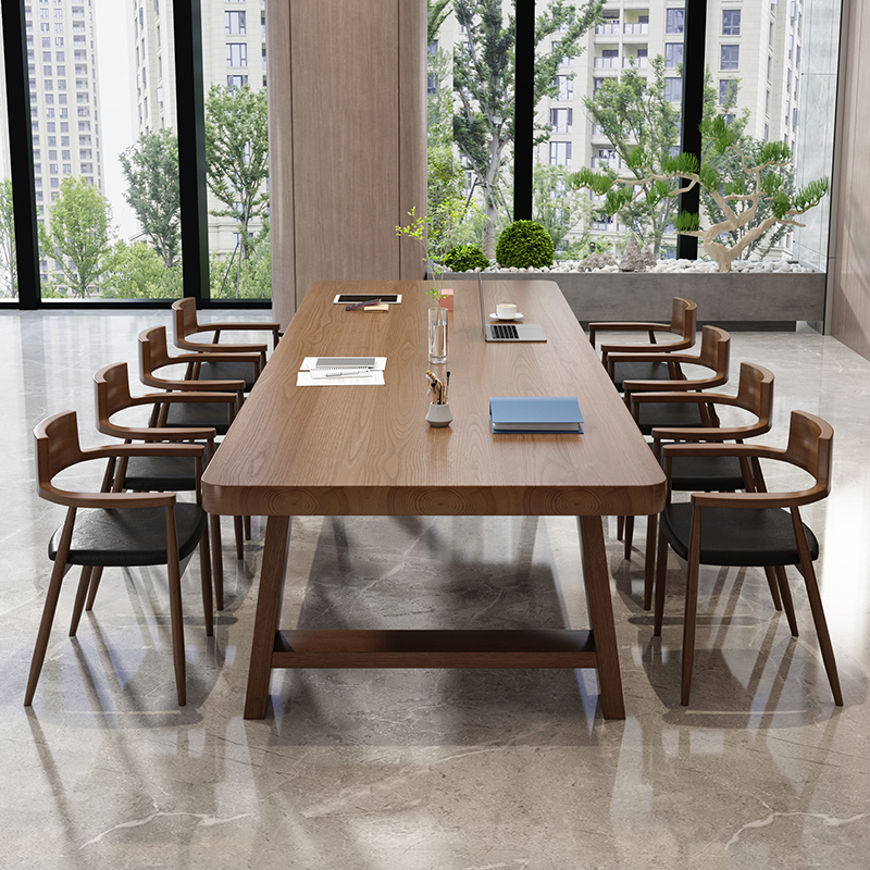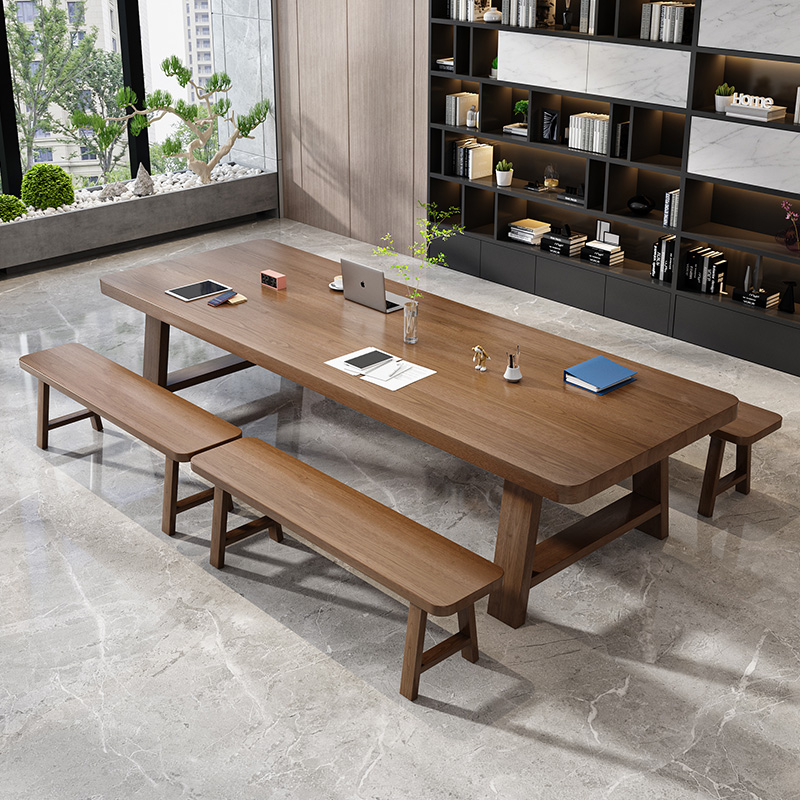 Full solid wood meeting table long table retro rectangular table office table and chairs combined simple and modern large bench