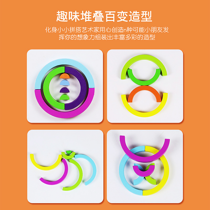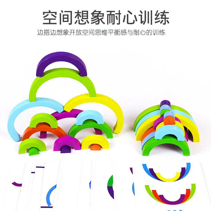 Mont's Enlightenment Space thinking wooden toys children creatively imagine rainbow block color shape puzzle gift