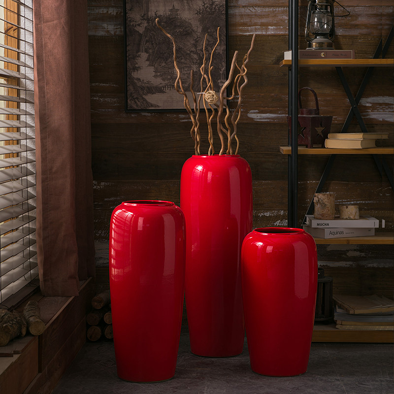 New Chinese wedding supplies new house living room bedroom study decoration wedding room decoration red ceramic floor vase