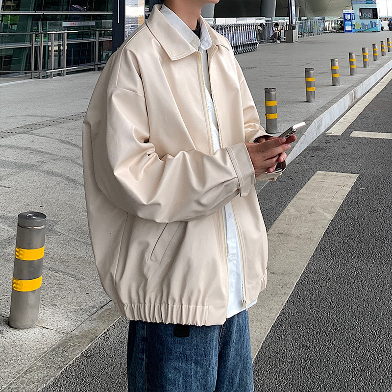 Leather jacket men's spring and autumn oversize American style retro ruffian handsome high-end fried street pu leather jacket men's trend