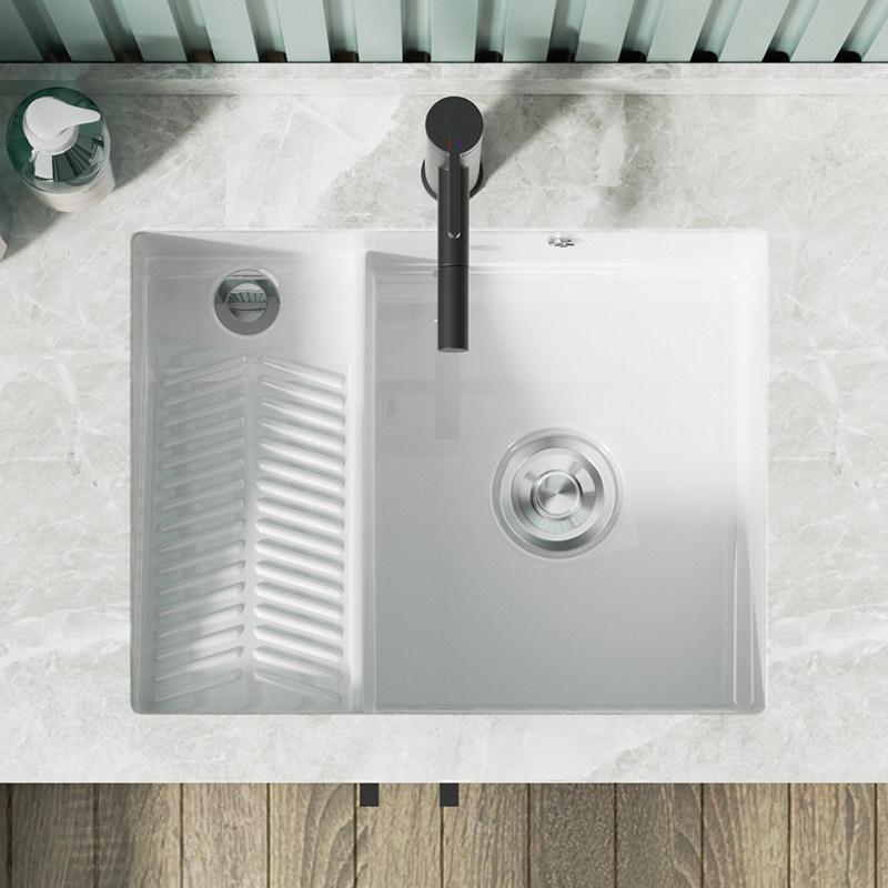 Kahnman ceramic laundry basin with washboard home balcony laundry tank double water laundry pool large size under-counter basin
