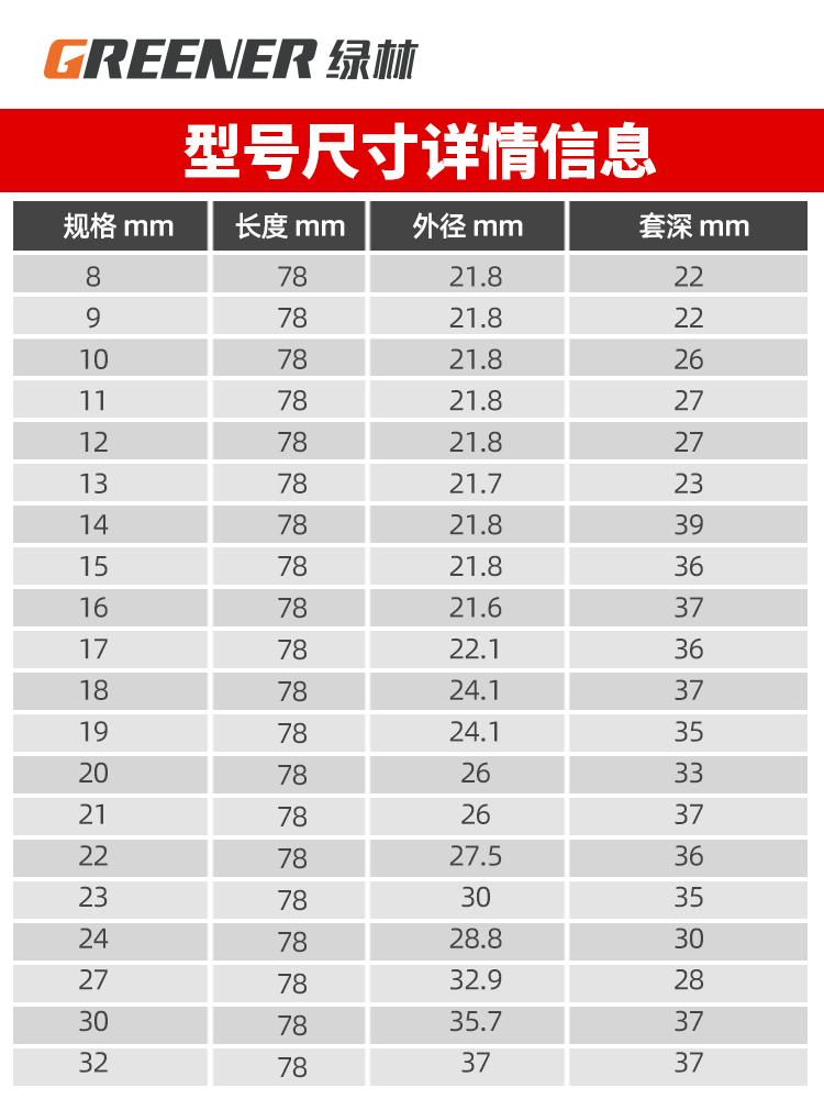 Green forest electric wrench sleeve head lengthened inner hexagonal full sleeve head tool 8 7 22mm lengthened hand electric drill-Taobao