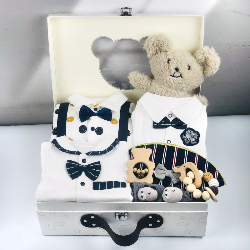 Newborn supplies baby gift box male baby autumn long-sleeved cotton gentleman jumpsuit romper suit full moon ceremony