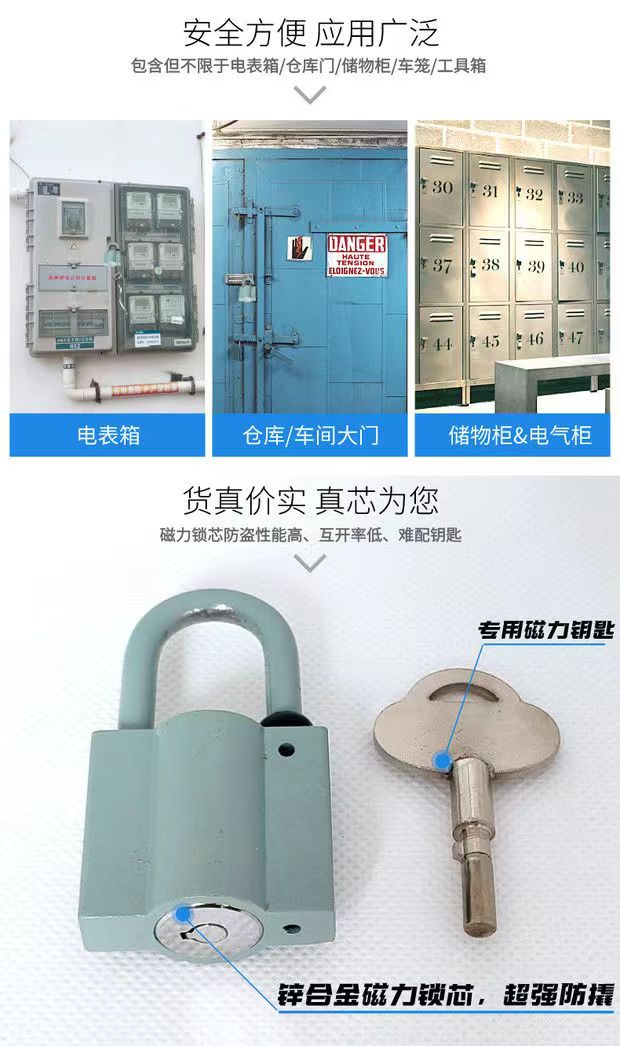 After unlocking, the key can be pulled out of the spray-plastic magnetic induction padlock magnetic bounce padlock anti-theft lock anti-pry rust home