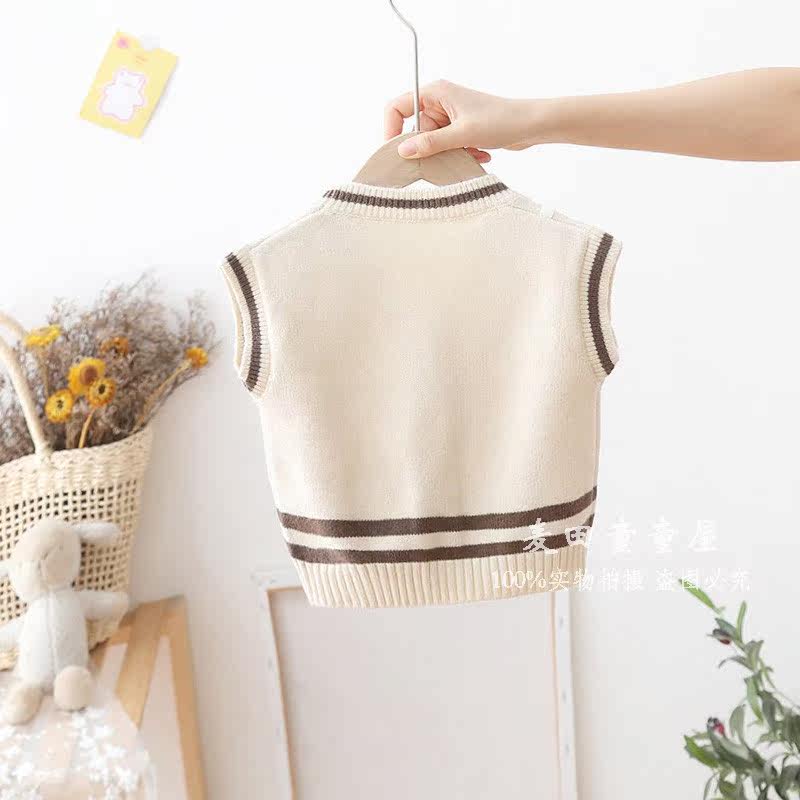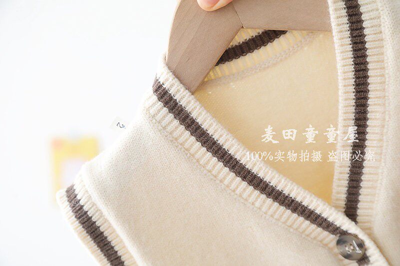 Spring and autumn thin section male baby vest V-neck 2 outside wear foreign style baby sweater cardigan 1 year old baby boy knitted vest 3